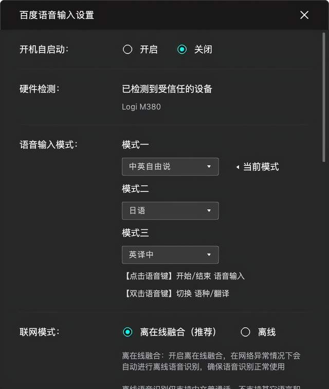 要使用罗技VOICE M380的语音功能,需要先下载百度语音输入法,安装完成后首先需要激活,激活码印在每个鼠标的背部。