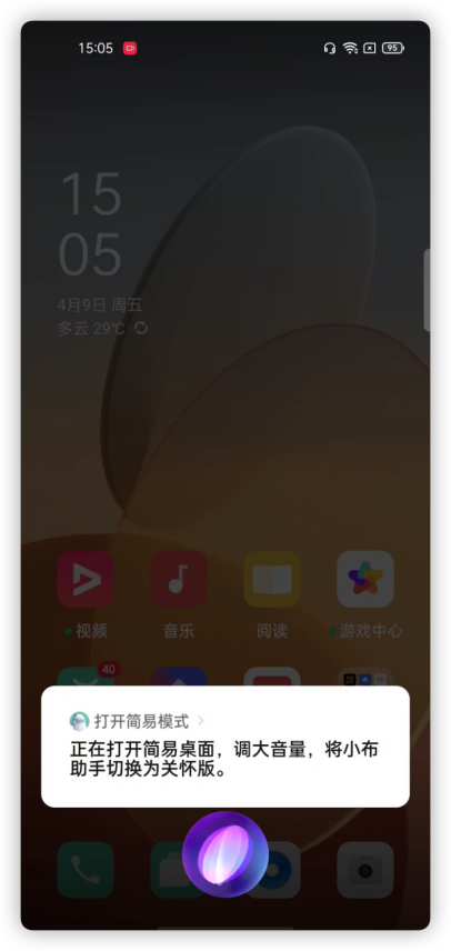 为了照顾老人群体对于智能语音的需求,OPPO还在今年4月份上架了小布助手关怀版,在这一版小布助手的帮助下,我们只要开启简易模式语音指令,小布助手就能够自动开启ColorOS系统大字体大图标的简易界面,同时调大音量,让老人群体能够通过改造后的智能助手,获取手机上面的各种声画内容,可以说是非常贴心了。